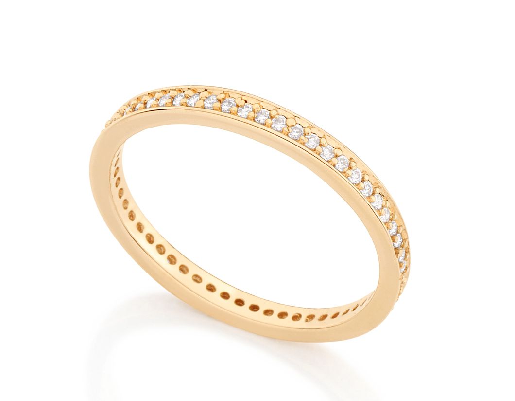 MEIA ALIANÇA CRAVEJADA POR 56 ZIRCÔNIAS DE 1MM. COLEÇÃO ANUAL 2018
