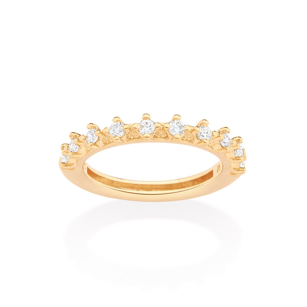 MEIA ALIANÇA CRAVEJADA POR 10 ZIRCÔNIAS DE 2,0MM. COLEÇÃO NOIVAS - O GRANDE DIA 2023