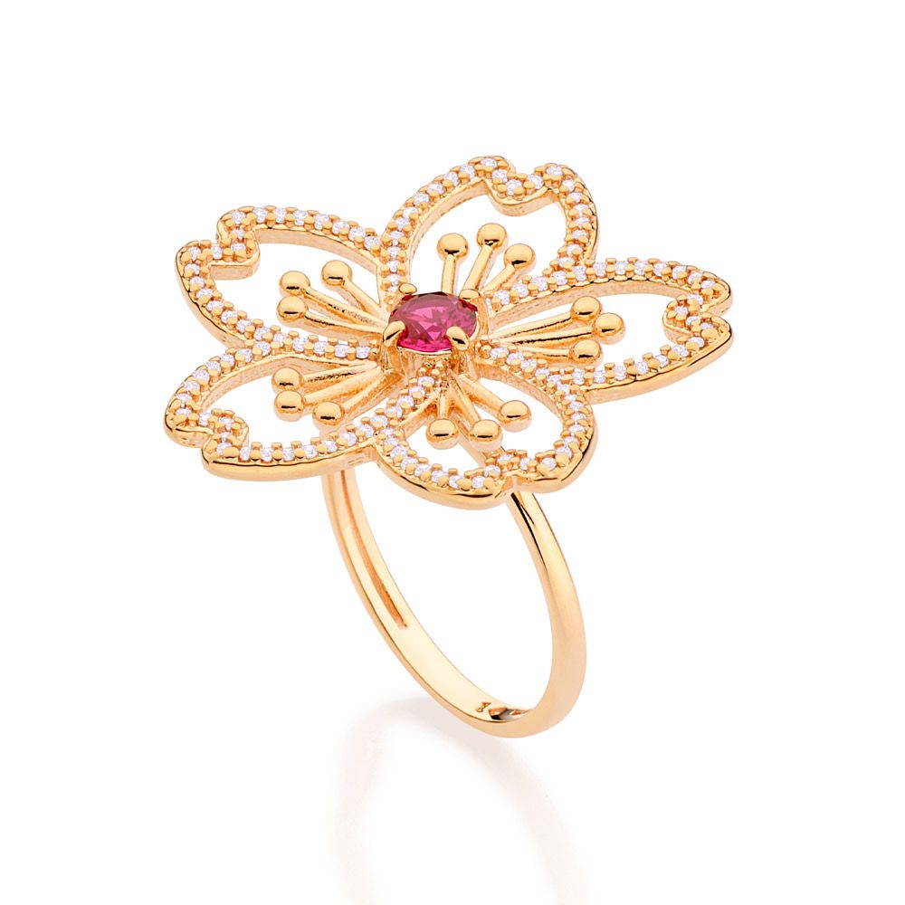ANEL BOTÃO COMPOSTO POR UMA FLOR COM 5 PÉTALAS E 15 ESFERAS, CRAVEJADO POR 119 ZIRCÔNIAS DE 0,80MM E 1 CRISTAL DE 4,00MM AO CENTRO. COLEÇÃO GARDEN PARTY 2023