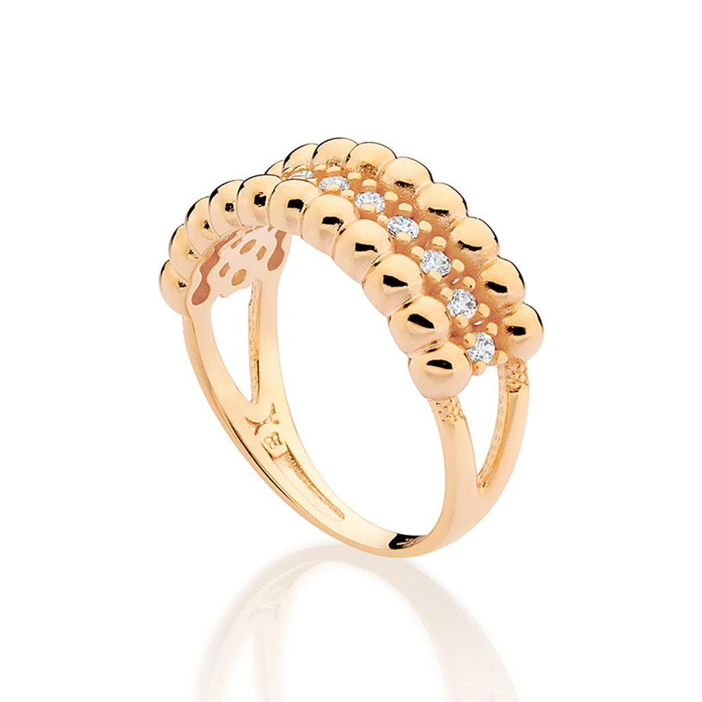 ANEL COMPOSTO POR ESFERAS E 11 ZIRCÔNIAS DE 1,75MM AO CENTRO, COM ARO VAZADO NAS LATERAIS. COLEÇÃO CAMINHOS - ANA HICKMANN 2024