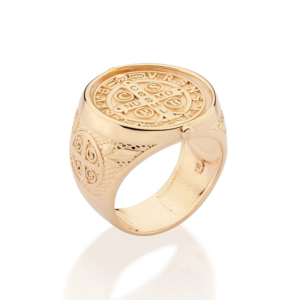 MAXI ANEL COM MEDALHA GIRATÓRIA DE SÃO BENTO COM ARO TRABALHADO NAS LATERAIS. COLEÇÃO ANUAL 2025 CÁPSULA DO TEMPO