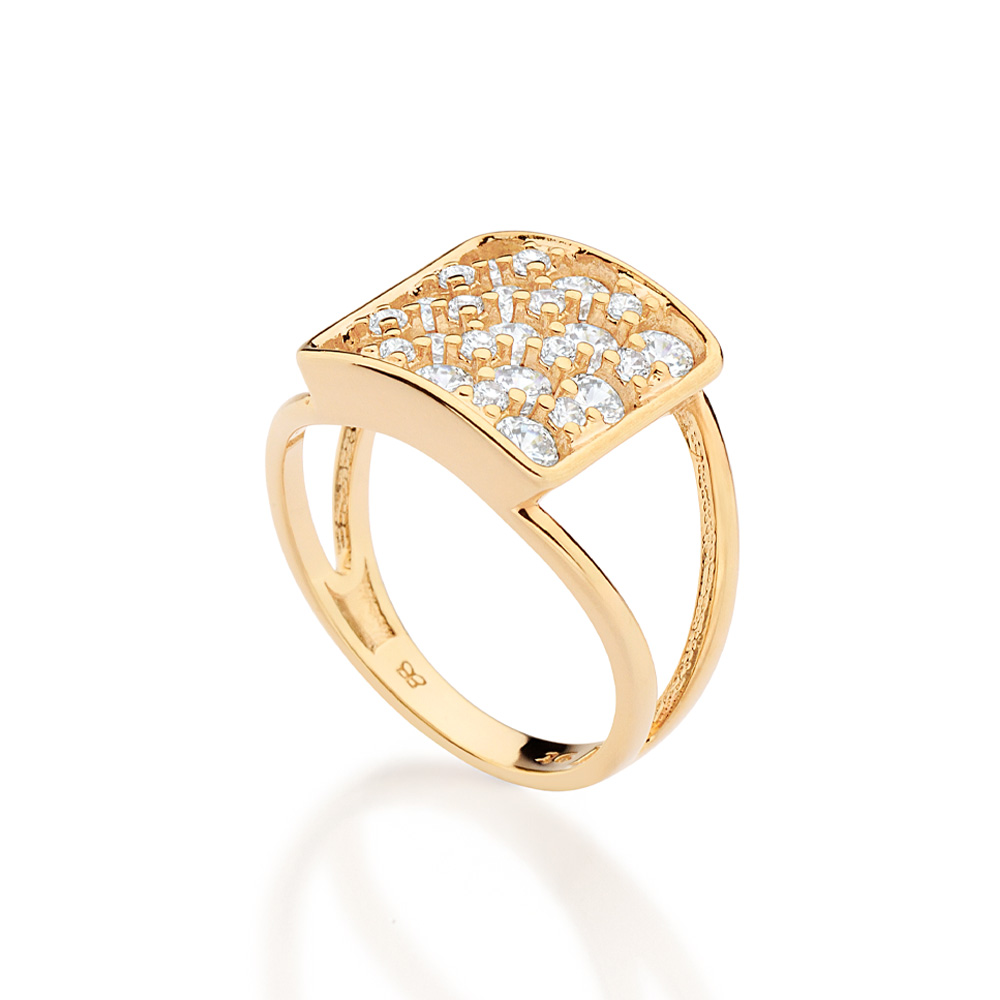 ANEL ARO DUPLO QUADRADO COM 12 ZIRCÔNIAS DE 1,50MM E 13 ZIRCÔNIAS DE 2,75MM. COLEÇÃO DIVINA 2025