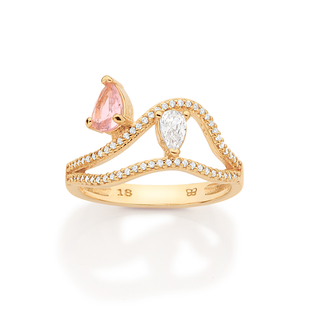 ANEL ABSTRATO COM 60 ZIRCÔNIAS DE 0,80MM, 1 ZIRCÔNIA GOTA DE 3X5MM E 1 CRISTAL GOTA DE 4X6MM. COLEÇÃO ELIXIR 2025.