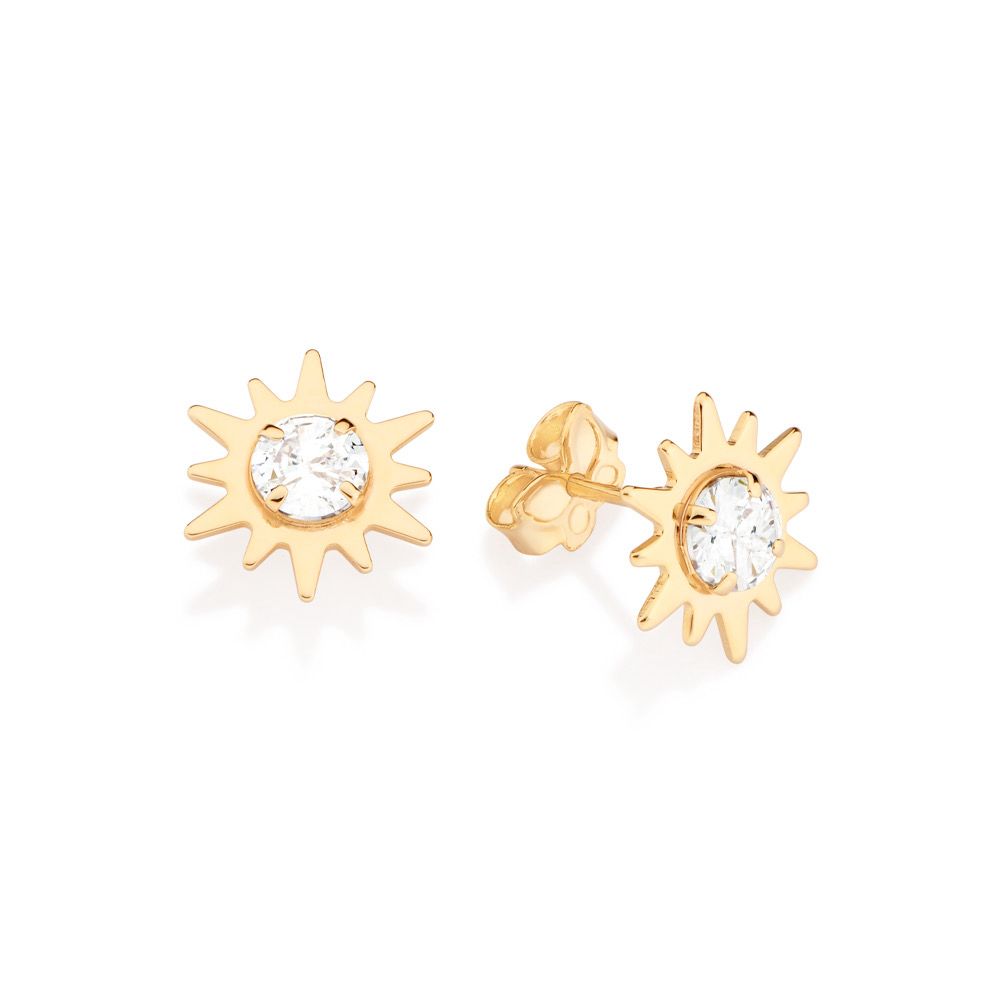 PINGENTE SOLITÁRIO FORMATO SOL COMPOSTO POR 2 ZIRCÔNIAS DE 5,0MM (PAR). MED 1,1CM X 1,1CM. COLEÇÃO UNIVERSO - GIO ANTONELLI 2023
