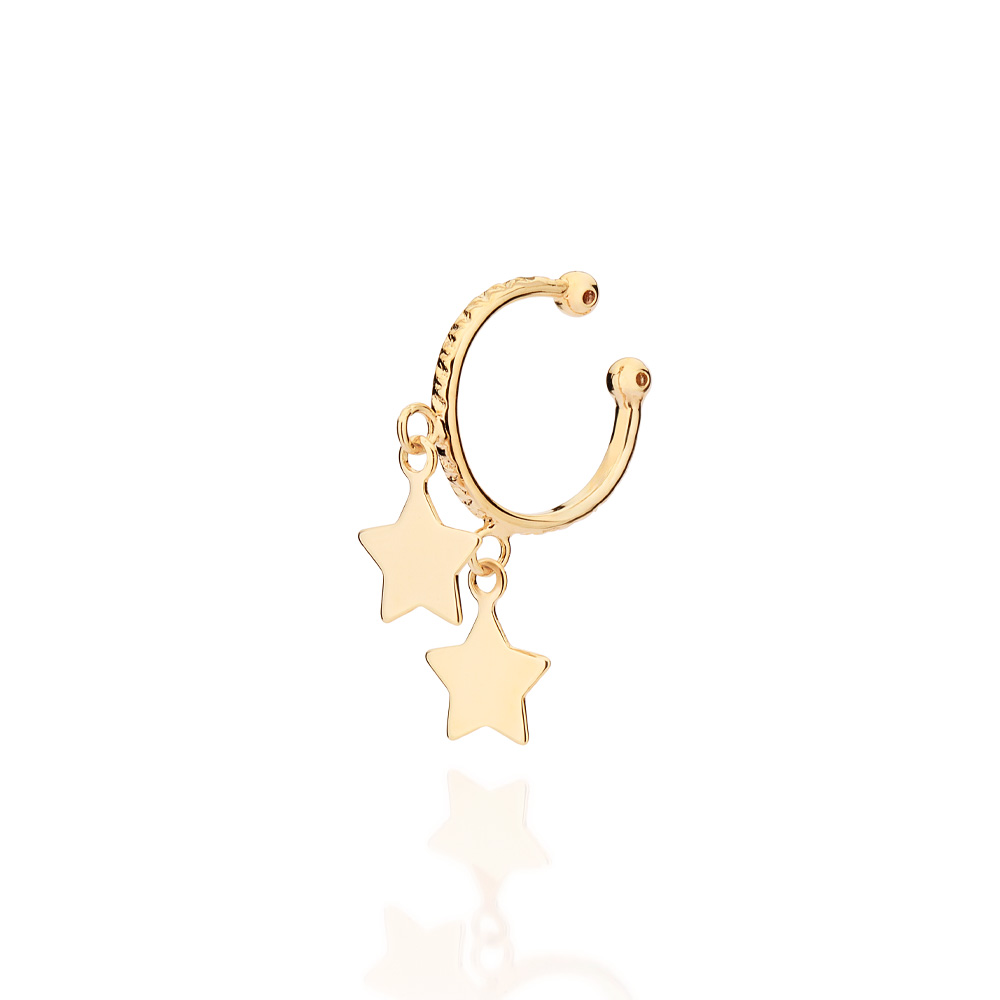 PIERCING DE PRESSÃO COM DETALHES EM BAIXO RELEVO E DUAS ESTRELAS PENDURADAS. MED 3,60CM X 1,50CM. COLEÇÃO DIVINA 2025