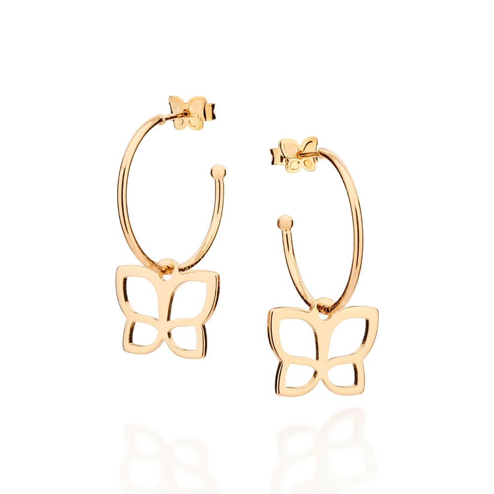 BRINCO MEIA ARGOLA COM BORBOLETA VAZADA. MED 3,20CM X 1,50CM. COLEÇÃO HISTÓRIA. ANUAL 2026