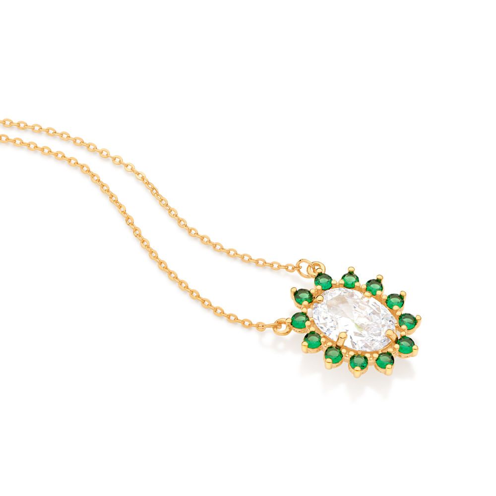 GARGANTILHA FORMADA POR CORRENTE DE ELO CADEADO LAMINADO FIO 0,35MM, COMPOSTA POR PINGENTE OVAL CRAVEJADO POR 12 ZIRCÔNIAS DE 3,0MM E 1 ZIRCÔNIA DE 10X14MM AO CENTRO. MED 45CM AJUSTÁVEL 42CM. COLEÇÃO RE_ENCONTRO - CATÁLOGO ANUAL 202