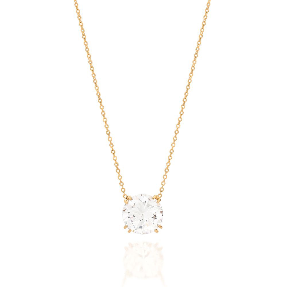 GARGANTILHA FORMADA POR CORRENTE DE ELO CADEADO LAMINADO FIO 0,35MM, COMPOSTA POR PINGENTE SOLITÁRIO CRAVEJADO POR 1 ZIRCÔNIA DE 15MM. MED 50CM AJUSTÁVEL 45CM. COLEÇÃO 10 ANOS - GIO ANTONELLI 2022