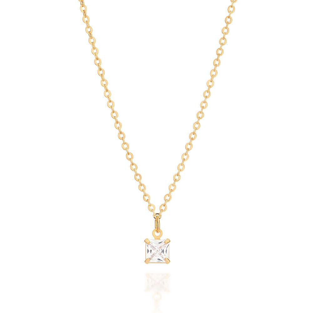 GARGANTILHA FORMADA POR CORRENTE DE ELO CADEADO LAMINADO FIO 0,35MM, COMPOSTO POR PINGENTE SOLITÁRIO CRAVEJADO POR 1 ZIRCÔNIA CARRÊ DE 5X5MM. ( PEDRA DO MÊS DE ABRIL ). MED 50CM AJUSTÁVEL 45CM. COLEÇÃO ANUAL BORBOLETAS - A ARTE DE TRANSFORMAR 2023