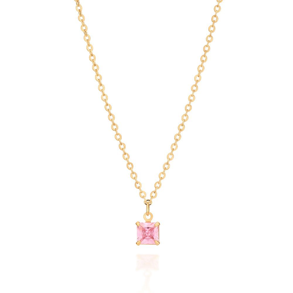 GARGANTILHA FORMADA POR CORRENTE DE ELO CADEADO LAMINADO FIO 0,35MM, COMPOSTO POR PINGENTE SOLITÁRIO CRAVEJADO POR 1 ZIRCÔNIA CARRÊ DE 5X5MM. ( PEDRA DO MÊS DE OUTUBRO ). MED 50CM AJUSTÁVEL 45CM. COLEÇÃO ANUAL BORBOLETAS - A ARTE DE TRANSFORMAR 2023