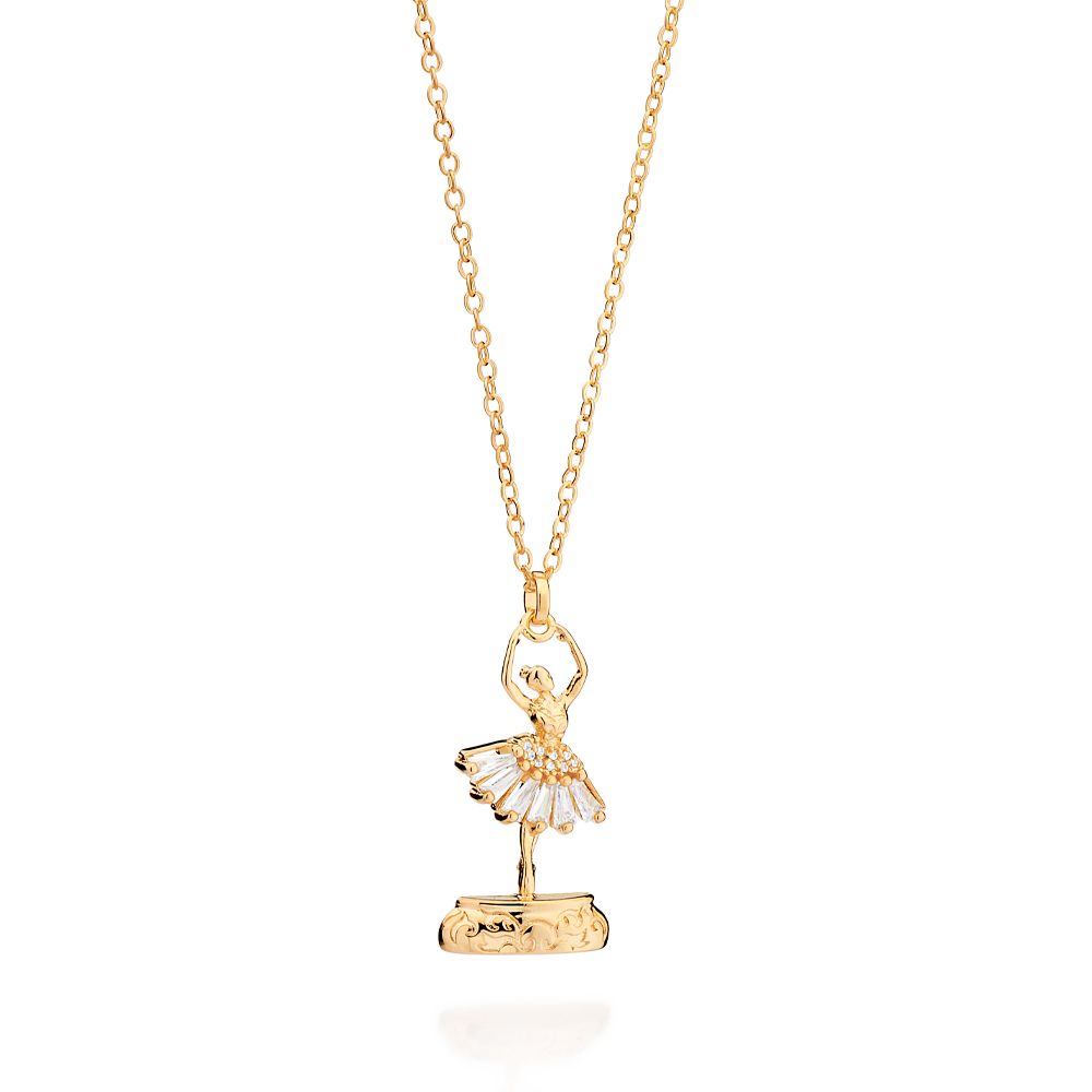 GARGANTILHA FORMADA POR CORRENTE DE ELO CADEADO COM PINGENTE FORMATO BAILARINA E CIMA DO PALCO CRAVEJADA POR 6 ZIRCÔNIAS TRAPÉZIO DE 4,00 X 2,00 X 1,00MM E 9 ZIRCÔNIAS DE 0,80MM. MED 50CM AJUSTÁVEL 45CM. COLEÇÃO ANUAL BAILARINA 2024
