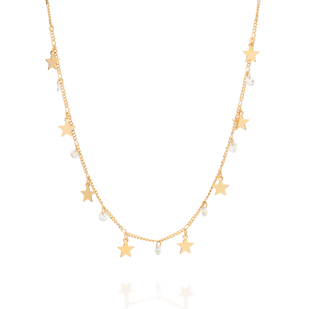 GARGANTILHA CORRENTE FIGARO 5X1 FIO 0,40MM COM 8 ESTRELAS LISAS INTERCALADAS POR 7 ZIRCÔNIAS DE 4MM. MED 42CM. COLEÇÃO MEDITERRÂNEA 2026