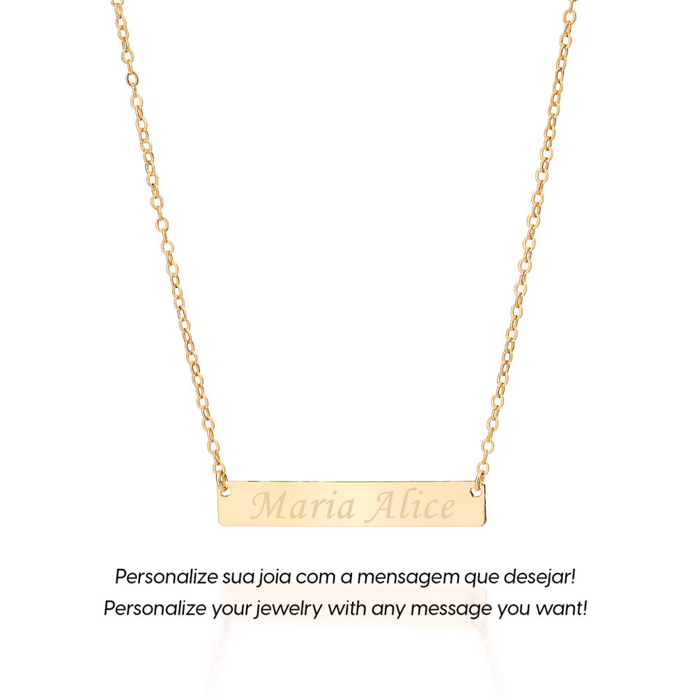 GARGANTILHA FORMADA POR CORRENTE DE ELO CADEADO FIO 0,30MM COM PINGENTE PLACA PERSONALIZÁVEL. MED 50CM AJUSTÁVEL A 45CM. COLEÇÃO DIVINA 2025