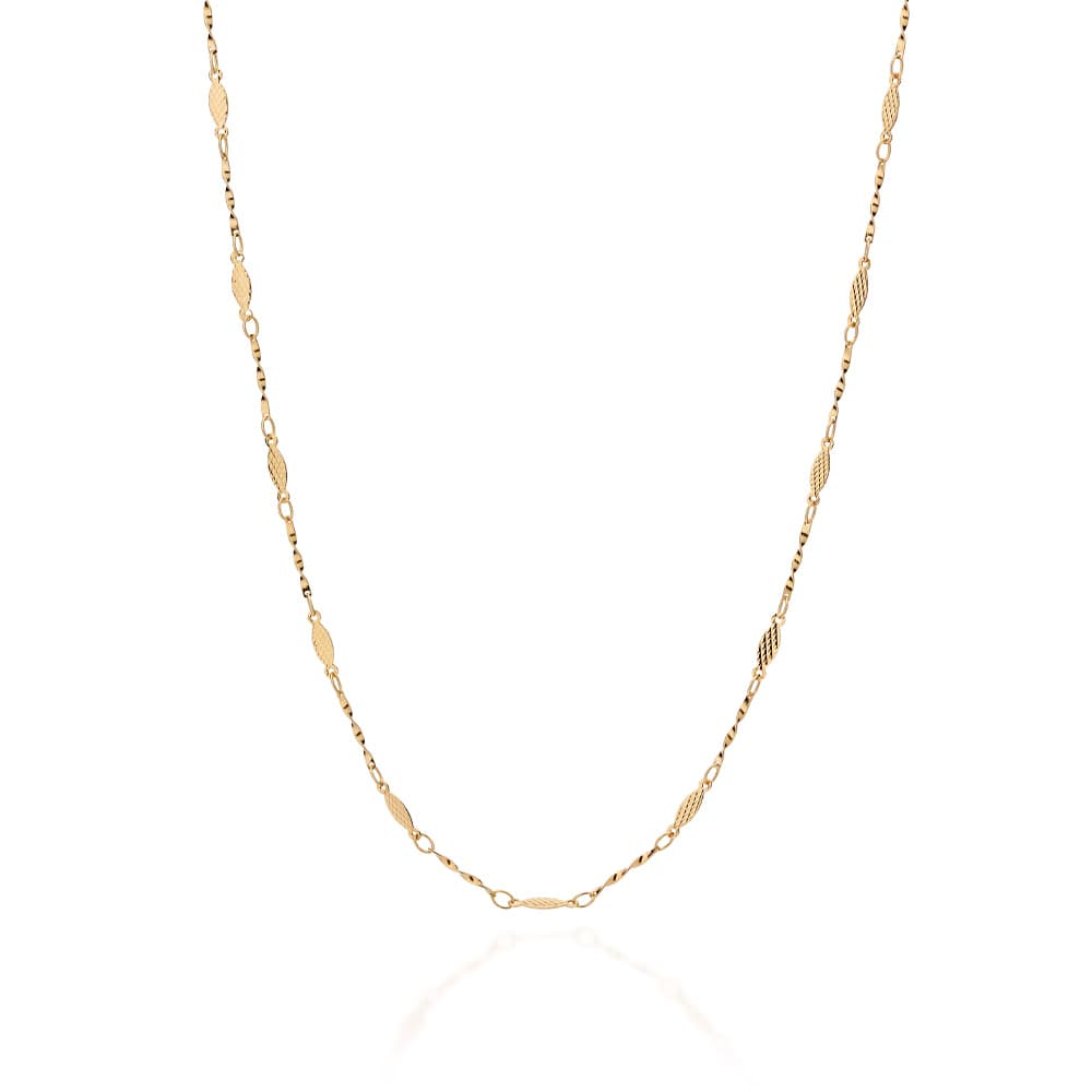 CORDÃO FIO TORCIDO DE 0,40MM COM NAVETES TRABALHADAS. MED 70CM. COLEÇÃO HISTÓRIA. ANUAL 2026