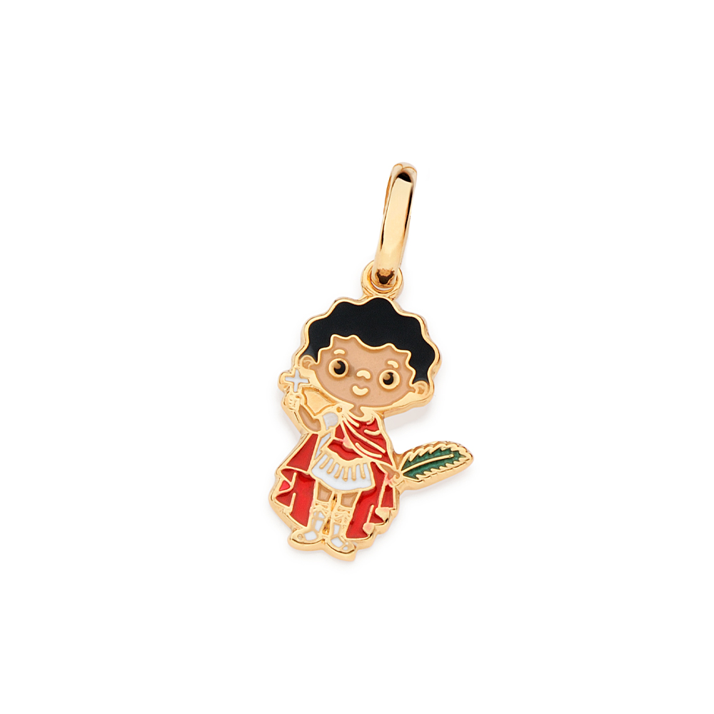 PINGENTE SANTO EXPEDITO COM APLICAÇÃO DE RESINA. MED 2,3CM X 1,2CM. COLEÇÃO CÁPSULA FÉ 2024