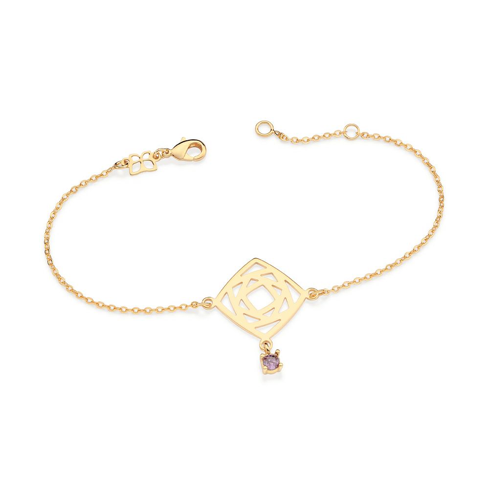 PULSEIRA REINO MÁGICO DE ROSAS FORMADA POR CORRENTE DE ELO CADEADO COMPOSTA POR PINGENTE FORMATO QUADRADO COM DETALHES VAZADOS E 1 ZIRCÔNIA DE 3,50MM PENDURADA. MED 20CM AJUSTÁVEL 18CM. COLEÇÃO WISH - DISNEY 2024