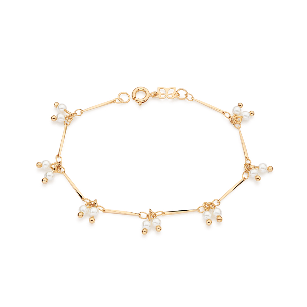 PULSEIRA FORMADA POR FIO COM PALITOS INTERCALADOS POR 16 PÉROLAS DE 3MM. MED 19CM. COLEÇÃO DIVINA 2025