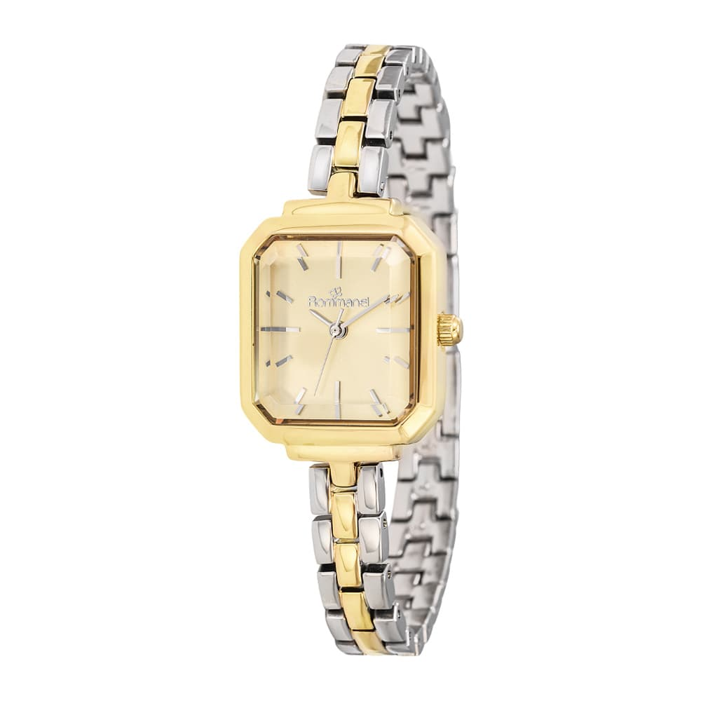 RELÓGIO ANALÓGICO SOCIAL MISTO PRATA COM DOURADO, CAIXA RETANGULAR DE METAL, MOSTRADOR DOURADO, PONTEIROS PRATEADOS, VIDRO MINERAL, PULSEIRA DE AÇO E FECHO TRAVA DE PRESSÃO, RESISTENTE A ÁGUA EM ATÉ 50M. NÃO É A PROVA D'ÁGUA, SIM, RESISTENTE A ÁGUA EM ATÉ 50M. COLEÇÃO WATCHES 2026