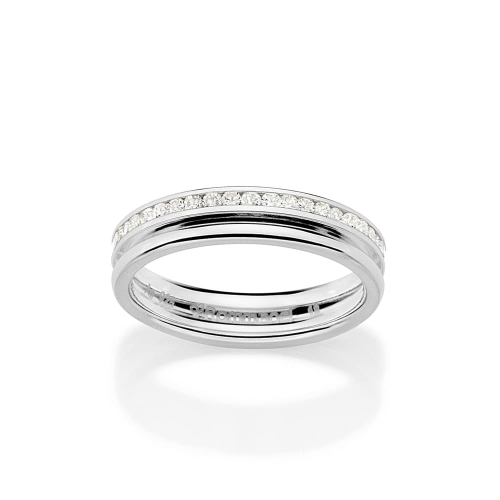 ALIANÇA COM FRISO 4,0MM E 40 ZIRCÔNIAS DE 1,50MM. (A QUANTIDADE DE ZIRCÔNIAS PODE VARIAR DEPENDENDO DA NUMERAÇÃO). COLEÇÃO HISTÓRIA. ANUAL 2026
