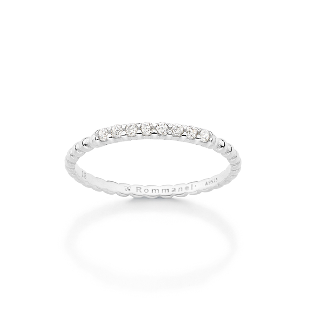 ANEL SKINNY, SENDO ARO COM BOLAS E 8 ZIRCÔNIAS DE 1,25MM AO CENTRO. COLEÇÃO MEDITERRÂNEA 2026