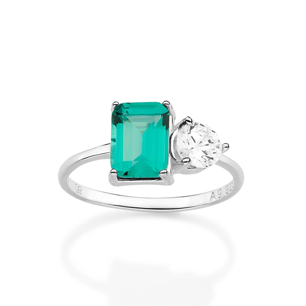 ANEL SKINNY COM 1 ZIRCÔNIA RETANGULAR DE 6X8MM E 1 ZIRCÔNIA REDONDA DE 5,00MM. COLEÇÃO ELOS - DIA DAS MÃES 2026