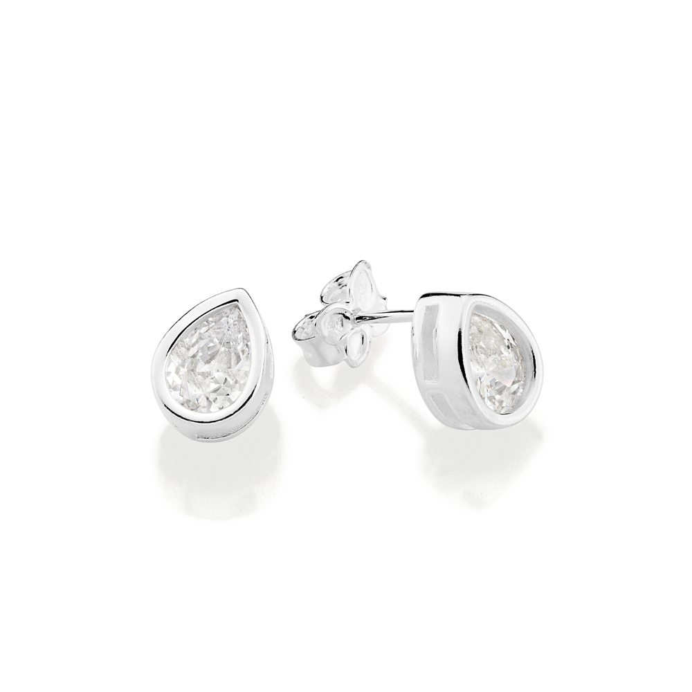 BRINCO SOLITÁRIO CRAVEJADO POR 2 ZIRCÔNIAS GOTA DE 5X7MM. MED 0,90CM X 0,70CM. COLEÇÃO AURORA 2025