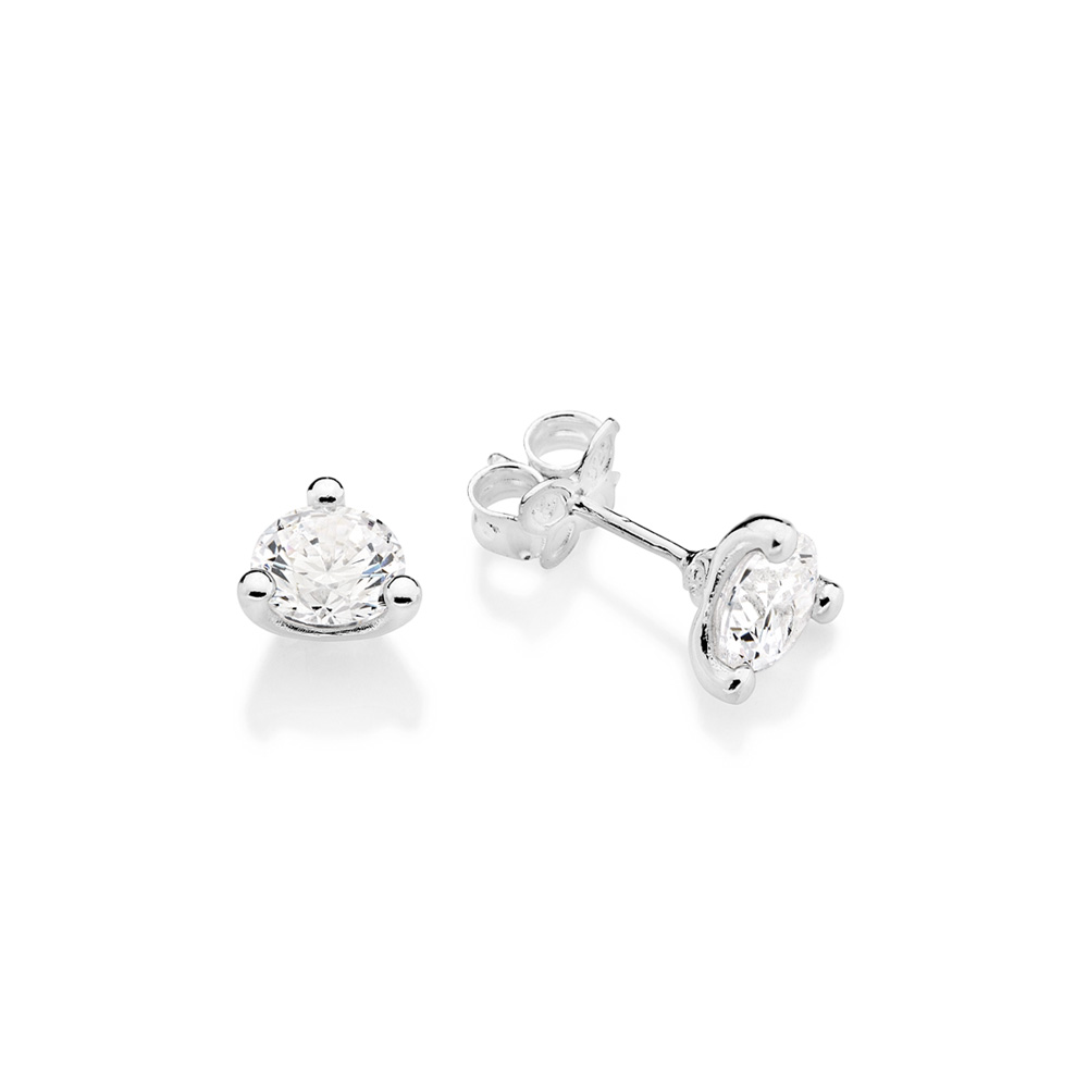BRINCO SOLITÁRIO COM 2 ZIRCÔNIAS DE 6,00MM. MED 0,60CM X 0,60CM. COLEÇÃO DIVINA 2025