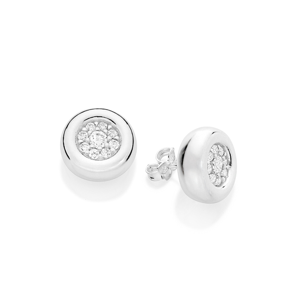 BRINCO BOLD COM 2 ZIRCÔNIAS DE 3,50MM E 16 ZIRCÔNIAS DE 2,00MM (PAR). MED 1,30CM DIÂMETRO. COLEÇÃO ELOS - DIA DAS MÃES 2026