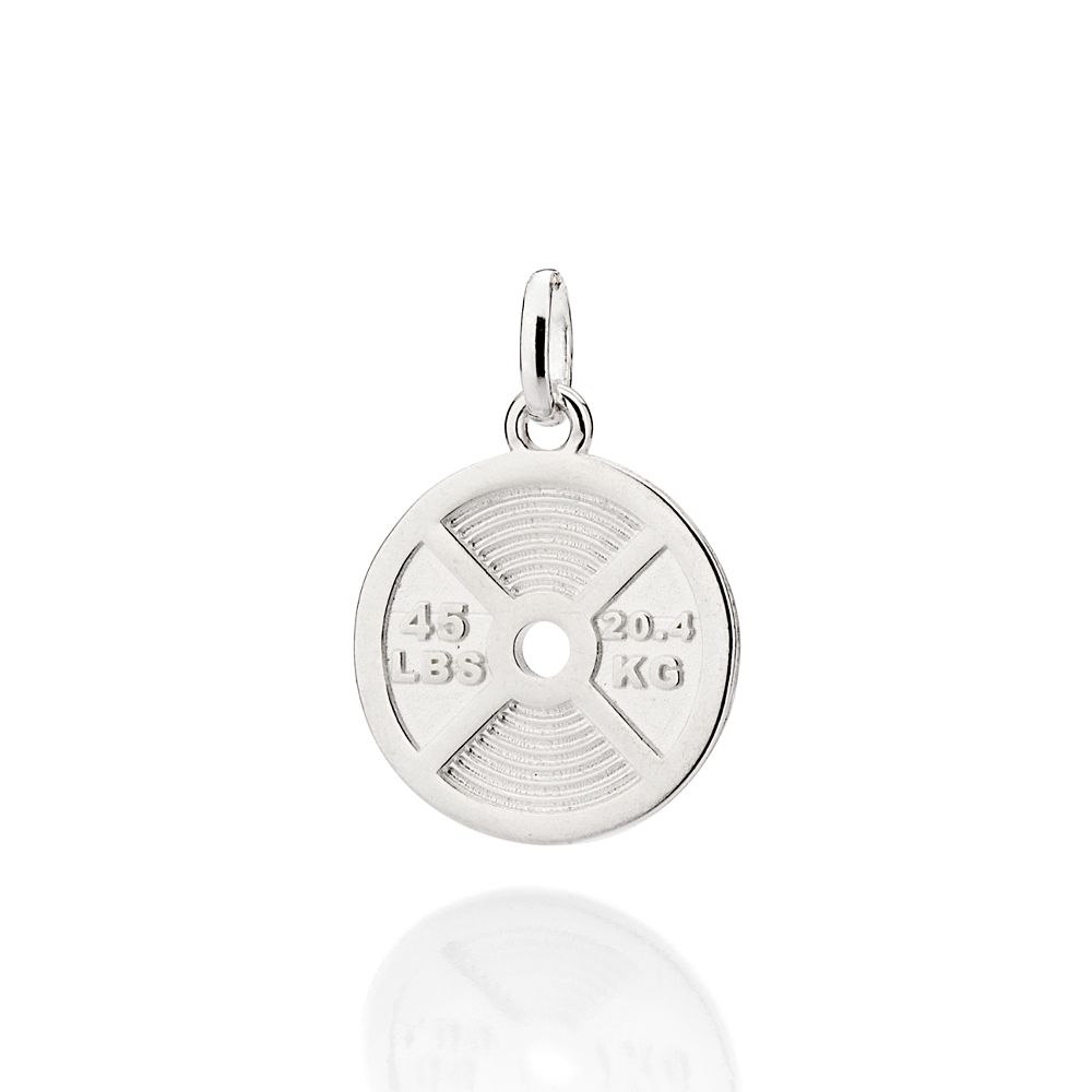 PINGENTE FORMATO ANILHA DE ACADEMIA COMPOSTO POR ESCRITA 20.4KG AO LADO DIREITO E 45LBS AO LADO ESQUERDO. MED 2,7CM X 1,8CM. COLEÇÃO HOMEM 2024