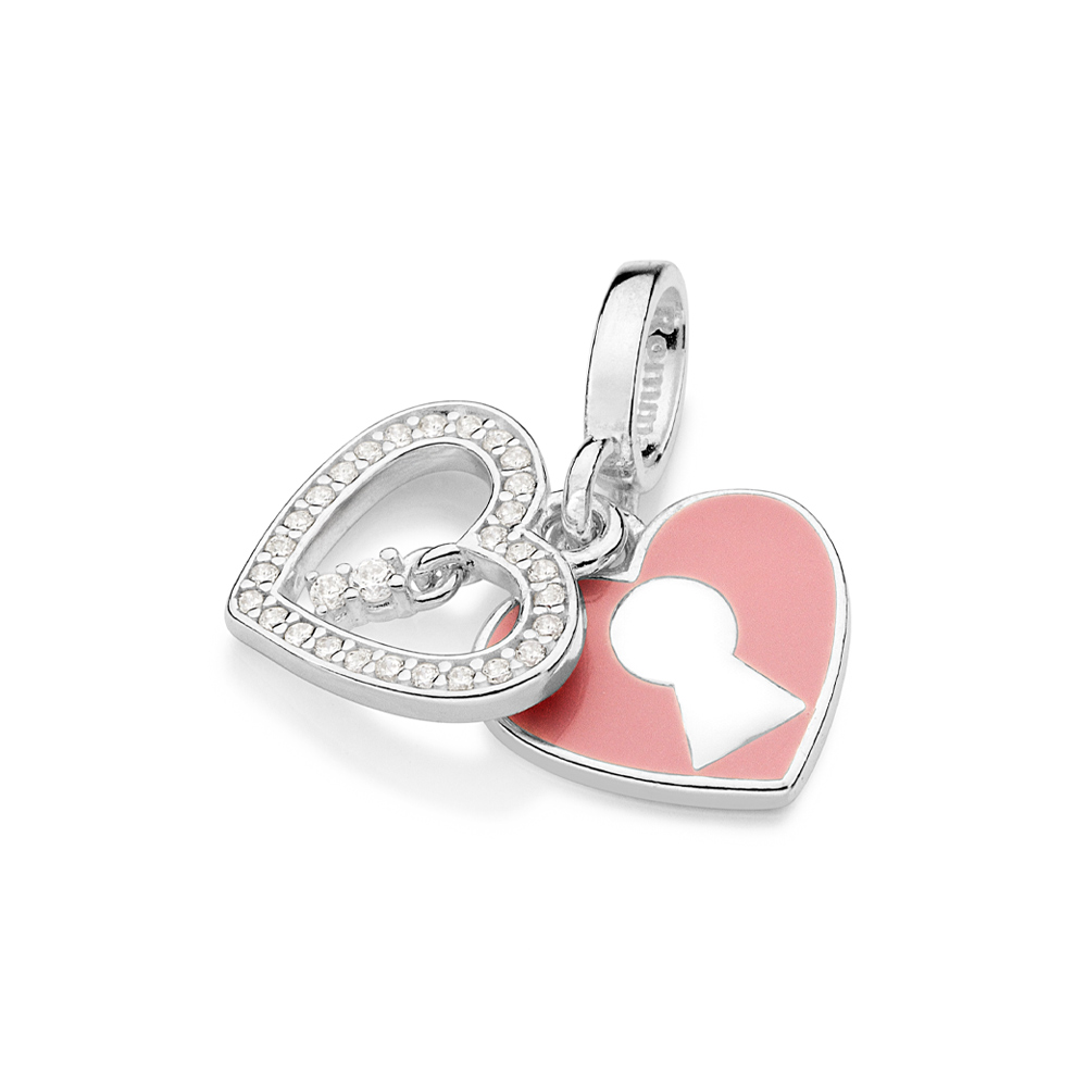 PINGENTE CORAÇÃO FECHADURA COM APLICAÇÃO DE RESINA E 1 CORAÇÃO SOBREPOSTO CRAVEJADO POR 28 ZIRCÔNIAS DE 1,0MM, 1 ZIRCÔNIA DE 1,25MM E 1 ZIRCÔNIA DE 1,50MM PENDURADAS AO CENTRO. MED 2,1CM X 1,3CM. COLEÇÃO NOSSO AMOR - DIA DOS NAMORADOS 2025