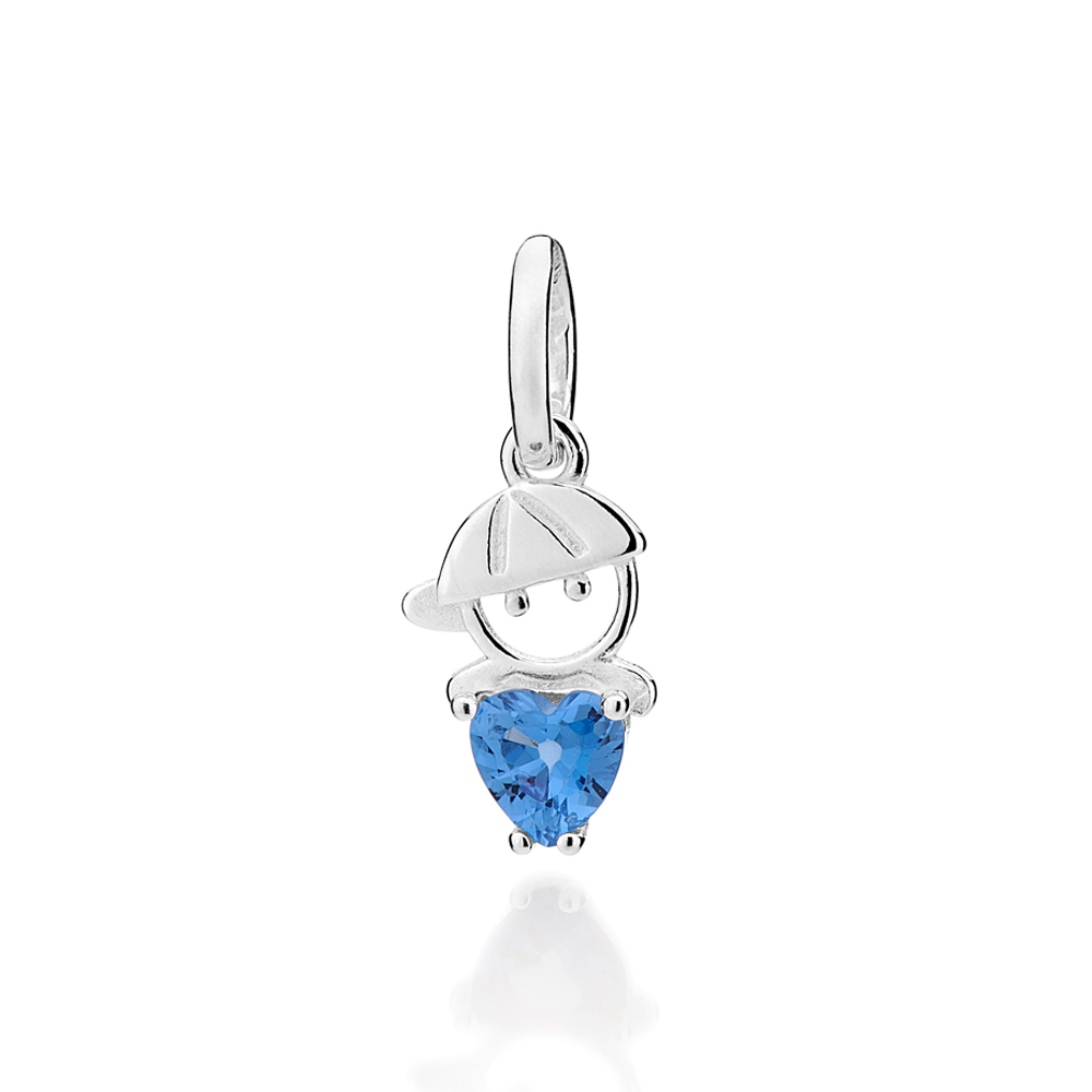 PINGENTE MENINO COM 1 ZIRCÔNIA CORAÇÃO DE 5X5MM. MED 1,90CM X 0,80CM. COLEÇÃO ELOS - DIA DAS MÃES 2026