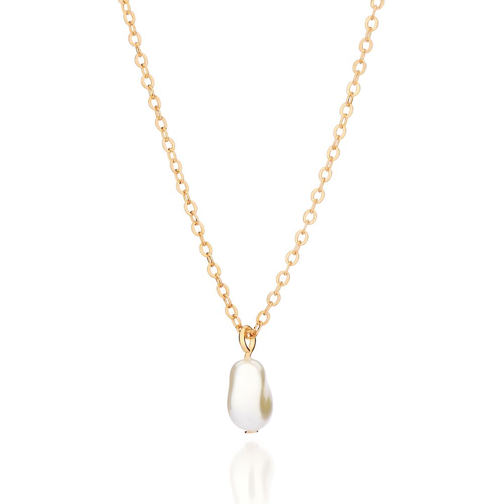 GARGANTILHA FORMADA POR CORRENTE DE ELO CADEADO LAMINADO FIO 0,35MM COM 1 PÉROLA BARROCA DE 9,00MM X 7,00MM. MED 50CM AJUSTÁVEL 45CM. COLEÇÃO ESPLÊNDIDA - 2024